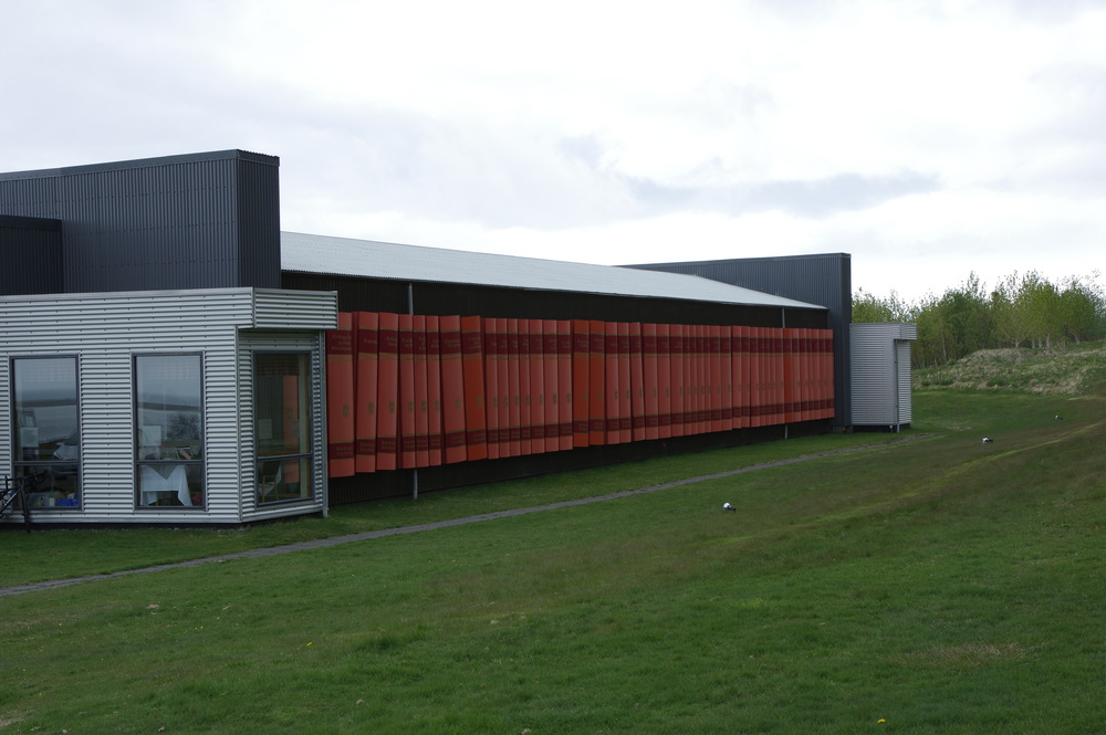It’s made of giant books! (Also, it has a restaurant inside.)