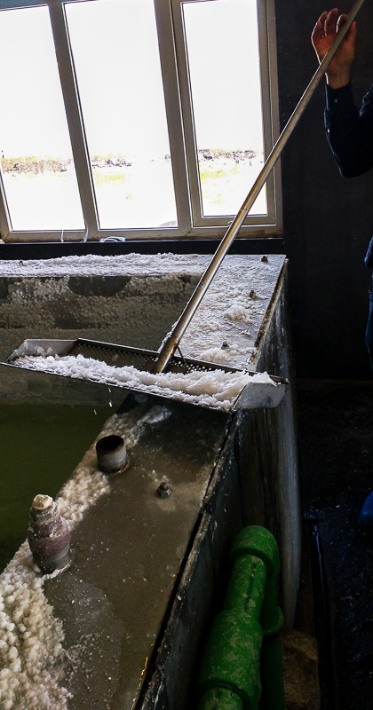 But soon enough, we were looking at vats of ocean water that were being evaporated to higher and higher salt concentrations.