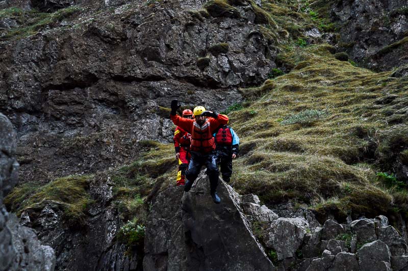 It was fun, but my horse decided not to listen to me very much. After we rode, we had lunch and continued on the road for about fifteen minutes, and then we arrived at our next destination, a white water rafting place [Viking Rafting, also in Varmahlíð]. This time, our mom didn’t go. We put on dry suits, gloves that looked like crab claws, and little rubber shoes. After we had all of our clothes on, we drove in a bus down to the river. Once we got to the river, our guide talked to us about safety. Once he was done, we all got onto the boat and paddled away.